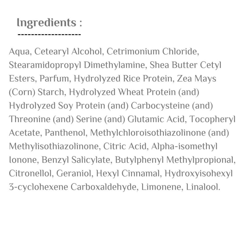 المكونات الاساسية:زبدة الشيا وبروتين الارز وفيتامين E وبانتينول والاحماض الامينية .